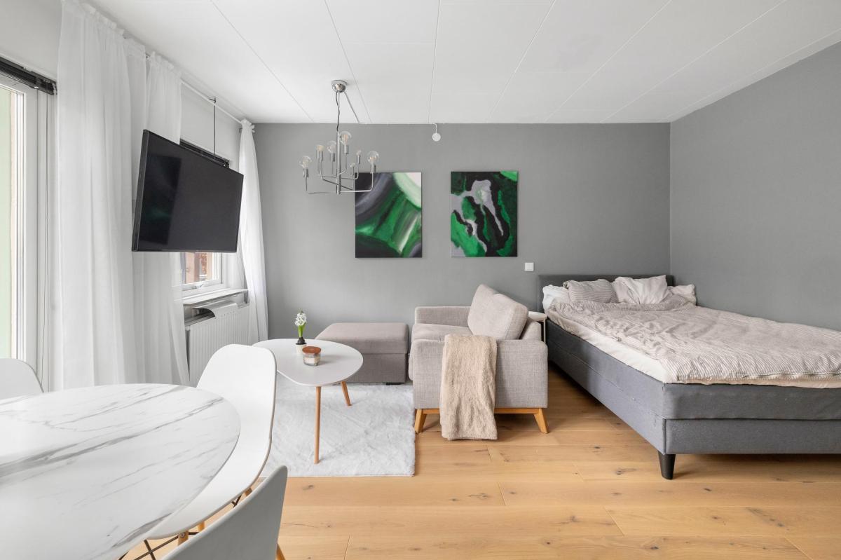Mycket trivsam, fräsch och välplanerad lägenhet belägen i populära Bällstalund. Lägenheten har genomgående nyare parkettgolv och nymålade väggar -25. Välkomnande möblerbar hall med garderober. Rymligt rum med öppen planlösning mot köket. Köket har diskmaskin -25, spis med häll, fullstor kyl/frys och ny bänkskiva. I rummet finns det plats för säng, vardagsrumsdel och matplats, från vardagsrummet är det utgång till uteplatsen. Uteplatsen ligger i västerläge och är insynsskyddad. Helkaklat badrum med klinkergolv med golvvärme, här finns både tvättmaskin och torktumlare.