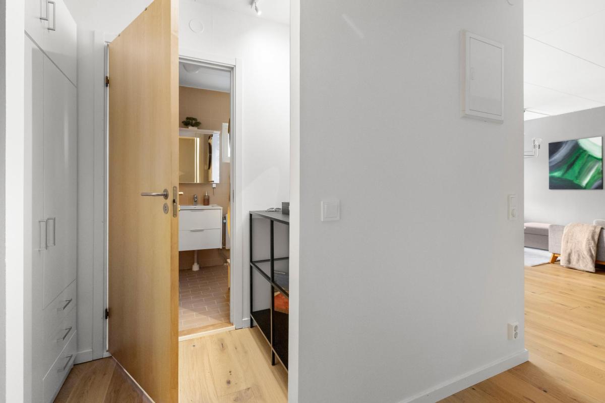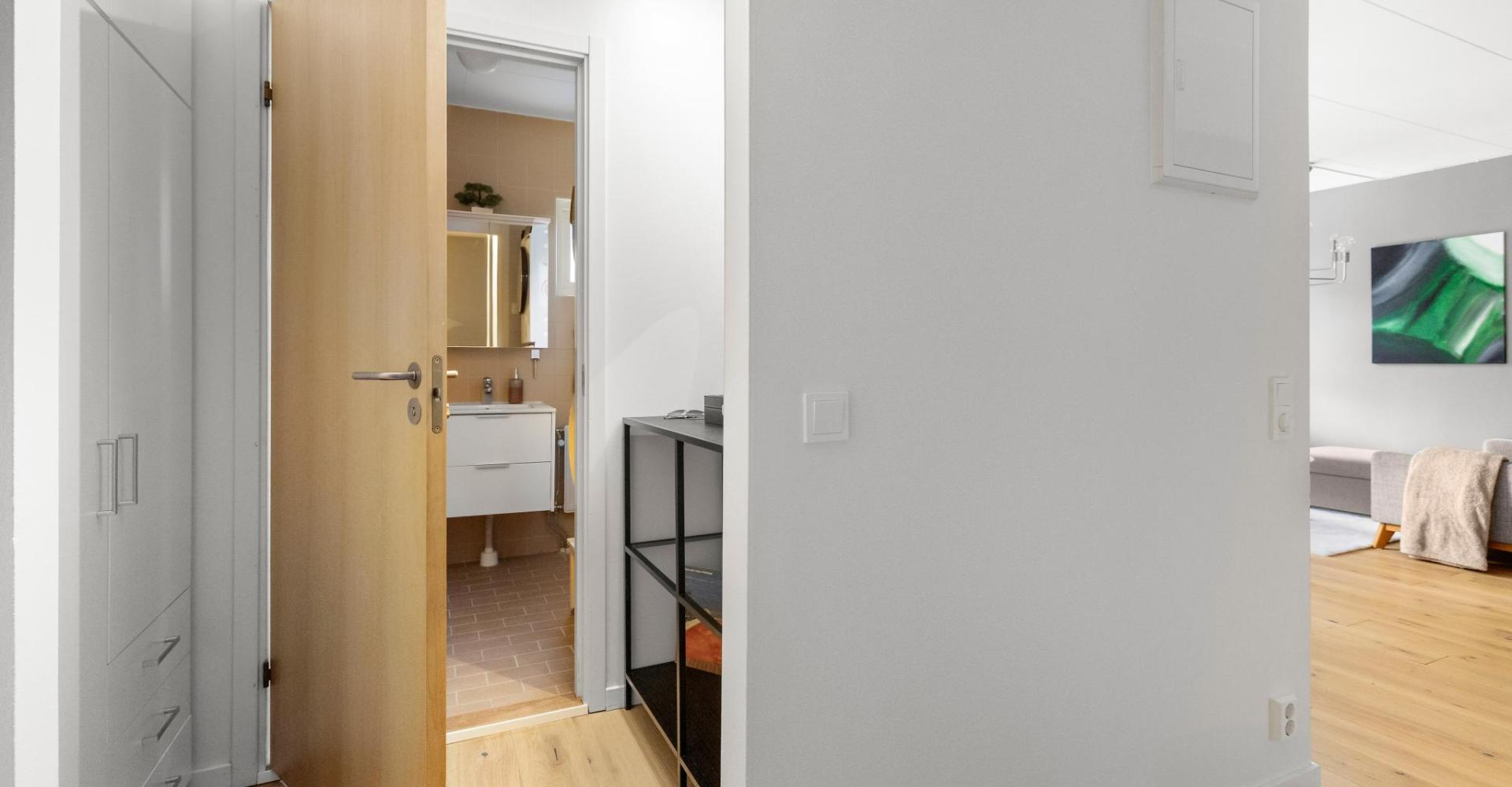 Hall mot badrum och rum