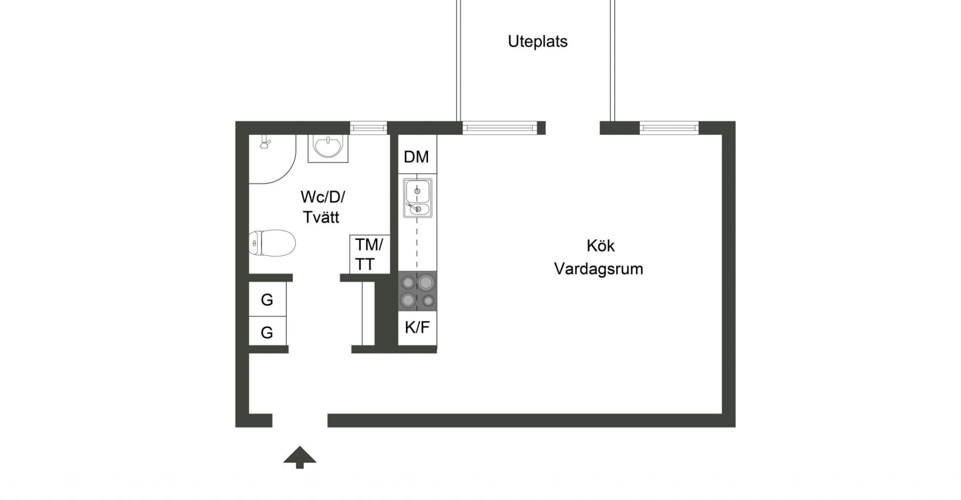 Rum med utgång till uteplats