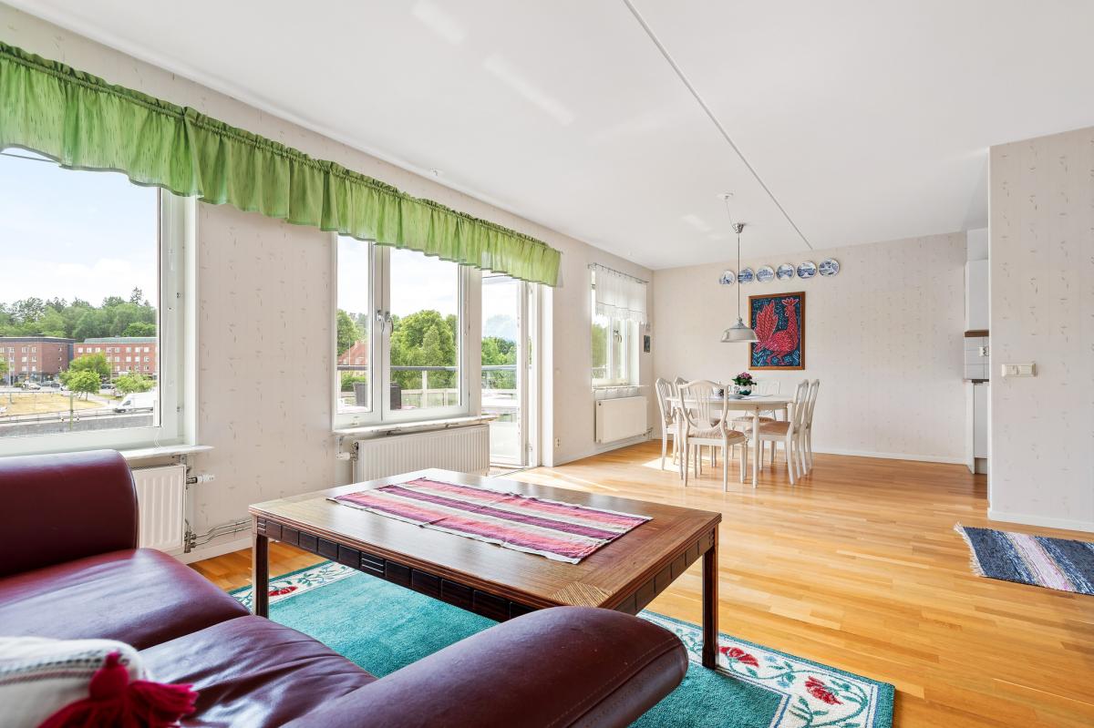 Bästa läget i huset, 4 tr upp med bekväm stor hiss. Härligt söderläge på balkong, kök och vardagsrum. Ingen insyn utan bara utsikt. Den som behöver 3 sovrum kan lätt sätta upp en vägg i vardagsrummet och få en 4- rummare. Inflyttning kan ske enligt önskemål..